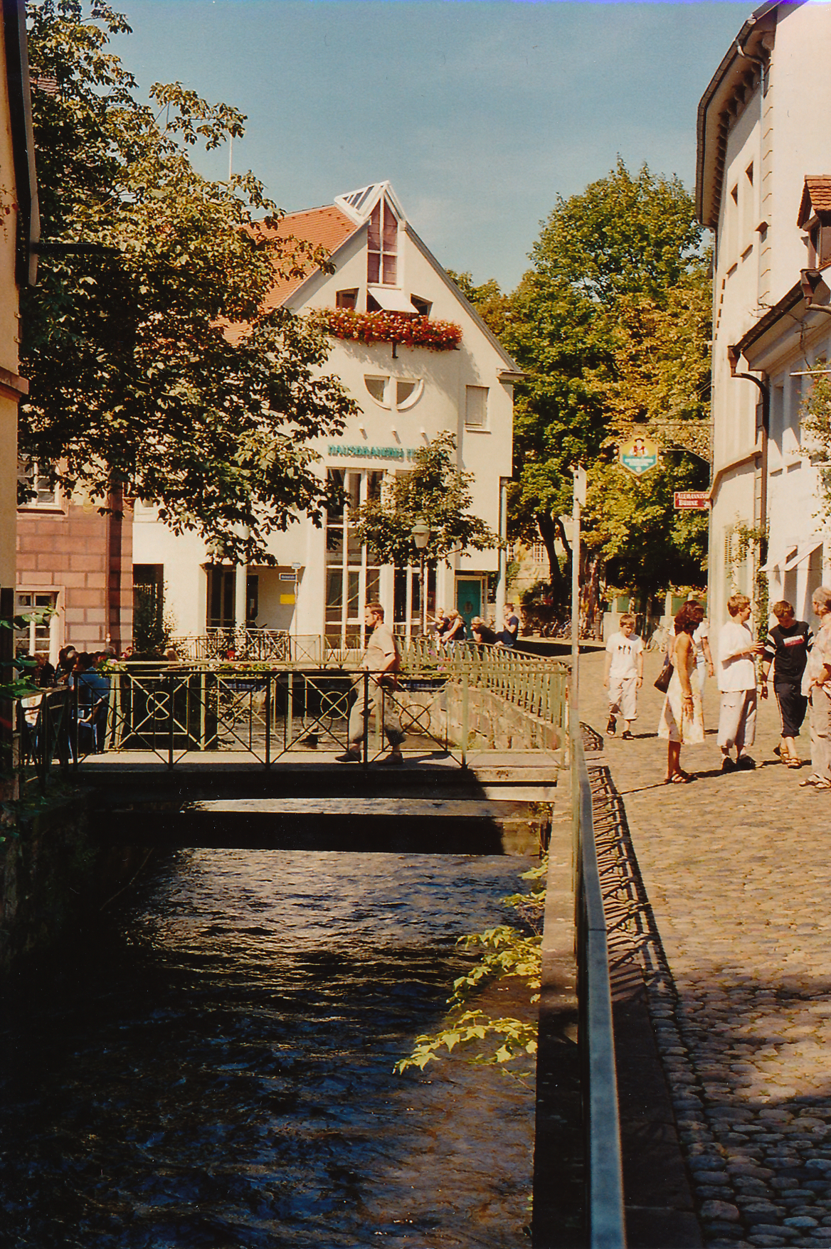 I have my own personal translator and tour guide here in Freiburg who has also become my official make-up artist and language tutor. Although you should probably ignore the language bit because I severly doubt that she would like to be associated in any way with my piss-poor German. I got some shots of Freiburg from the top of the Schlossberg (the big hill that is basically an ant’s foot away from the centre of the town). The sun is out and everything looks great. I’m experimenting with photography. If anything at all comes out properly I’ll be extremely surprised and very happy with myself. I’ve decided to develop my inner-Luddite in order to balance my increasing nerdiness – what with all the writing, diaries, reading, learning languages, etc. So I’m using a completely manual camera. Completely manual. It has a slot for batteries that you can use for a light meter… but I’ve thrown them away. Who needs em? Well, we’ll see on thursday when I get the first batch of photos back. So now that I’ve got pictures of the outside of Freiburg I’m gonna take shots of the city and the city-zens.